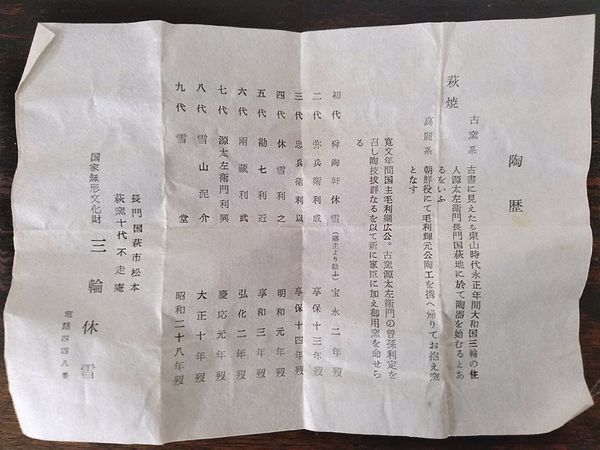 十代三輪休雪は九代三輪雪堂の次男として山口県萩市に生まれる。