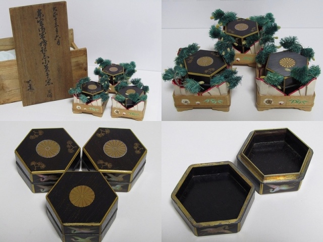 | 買取品目 | 昭和天皇御成婚記念 紫檀六角形 ボンボニエール三点 | ||