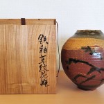 埼玉県和光市にて中里重利の唐津耳付花入、桐箪笥、着物。